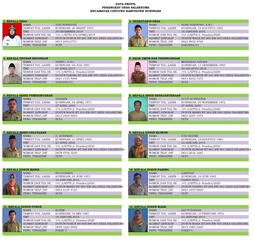 DATA PROFIL KEPALA DESA DAN PERANGKAT DESA SALAREUMA